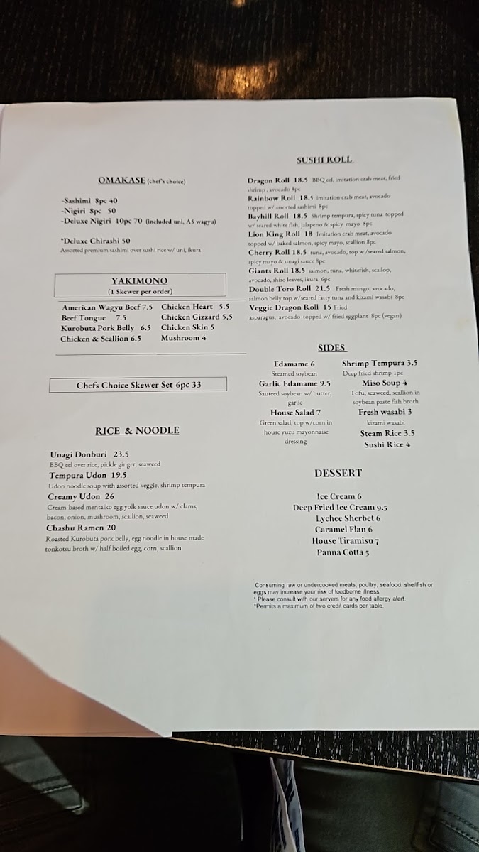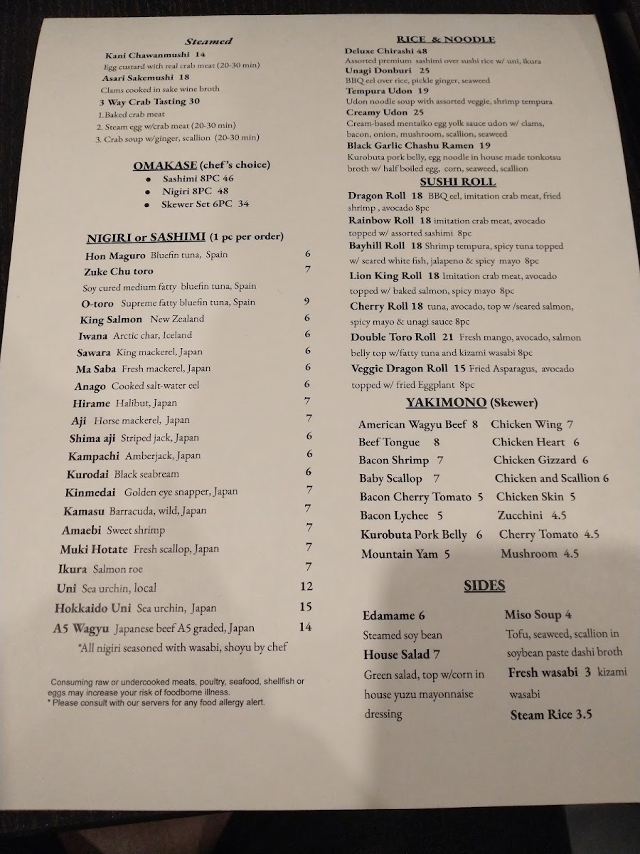 Included uni, A5 wagyu.