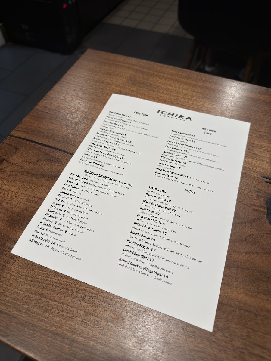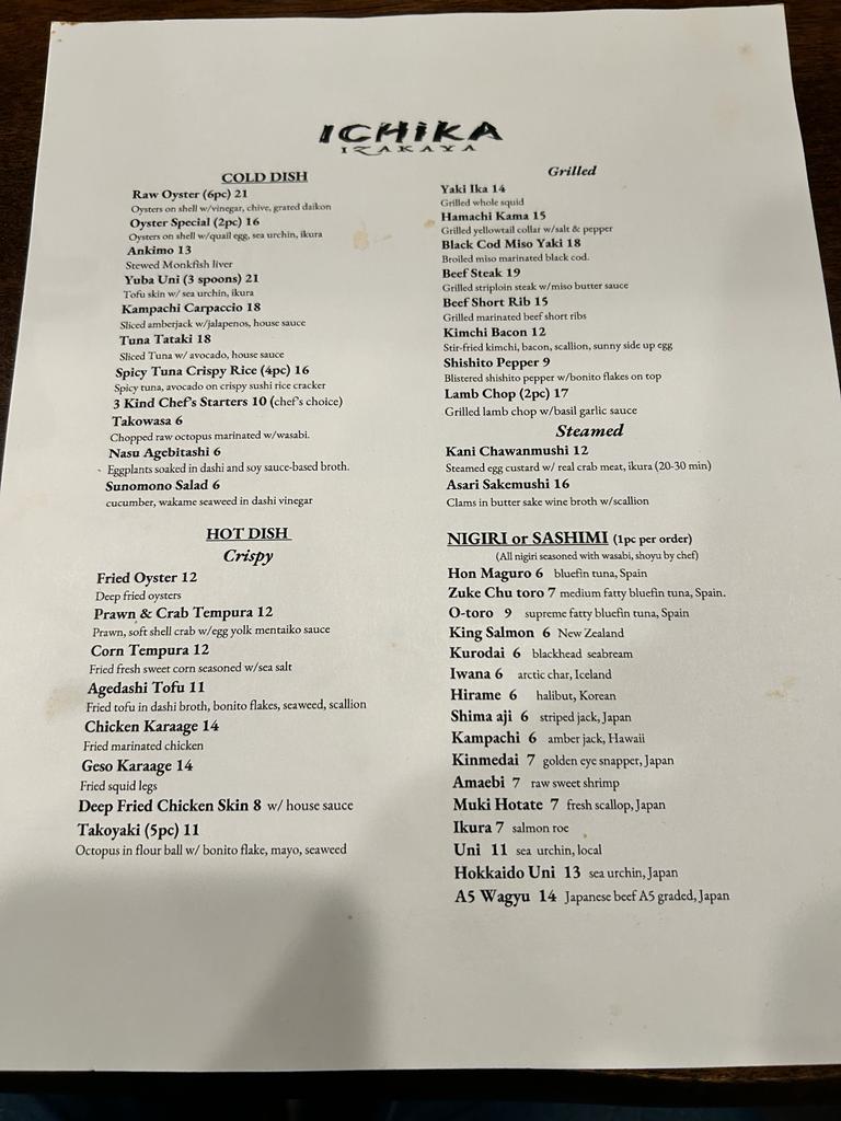 Ichika Izakaya Menu